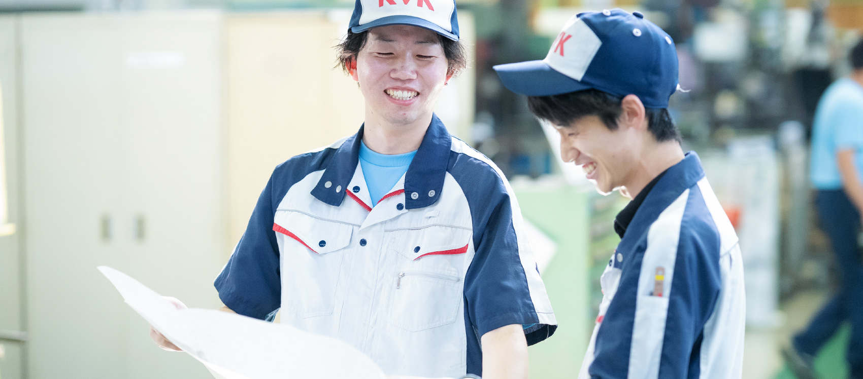KVKは鋳造工程から製品の組み立て工程までを一貫して行う『一貫生産体制』を構築し、10 を超える製造部門が一丸となってモノづくりを行うことで、高品質・低コスト・短納期を実現しています。
