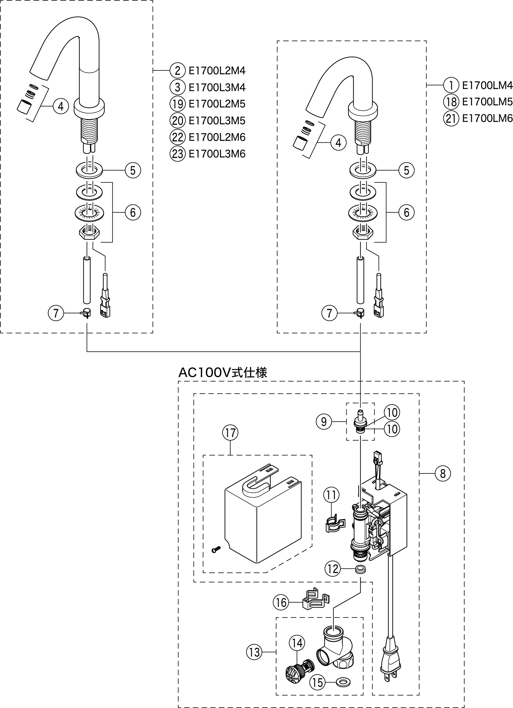 1~3 と 18~23 の吐水口ユニットを交換される際は、9 の Z420944S プラグの交換もお勧めします。