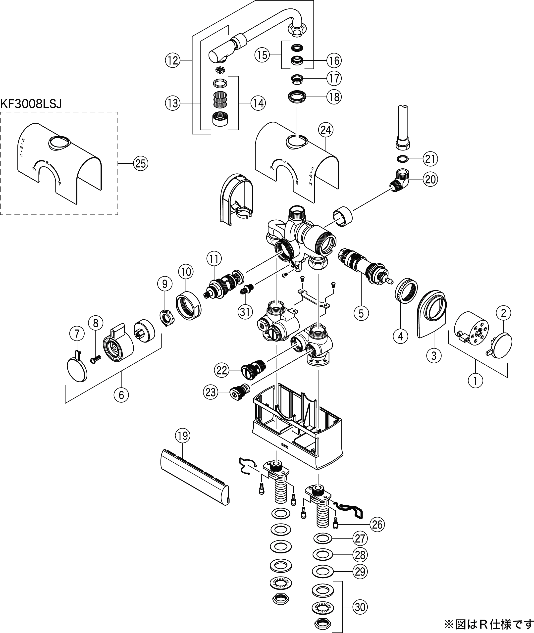 | 6 | ZK1F3008G | 切換ハンドルセット メッキ |